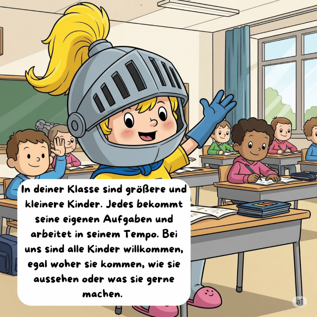 An unserer Schule darf jedes Kind in seinem eigenen Tempo lernen. Niemand muss perfekt sein. Fehler sind erlaubt. Wir helfen uns gegenseitig. Es gibt Unterricht, Projekte, Feste, Ausflüge und viele besondere Aktionen. Und manchmal auch ein bisschen Quatsch 😊