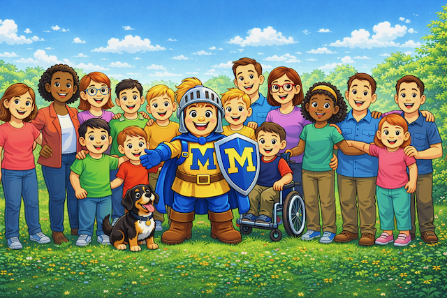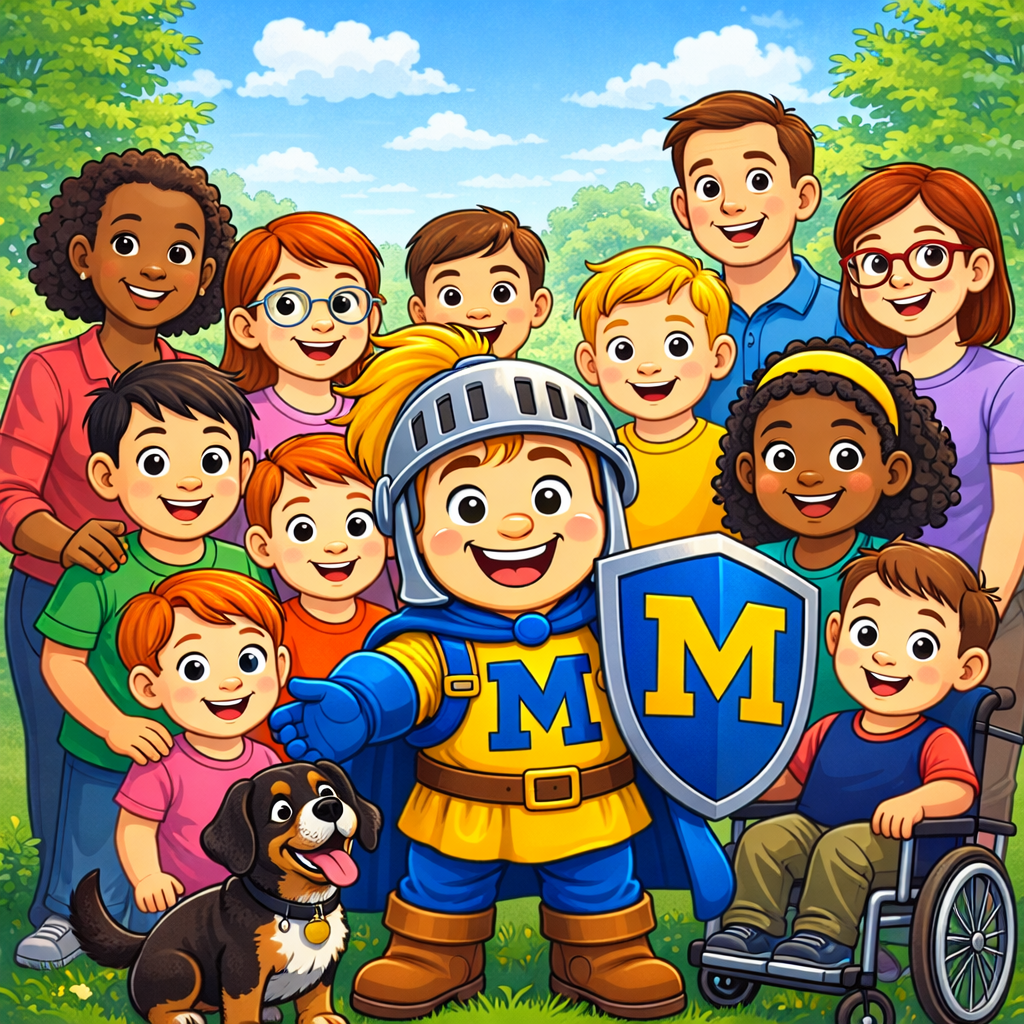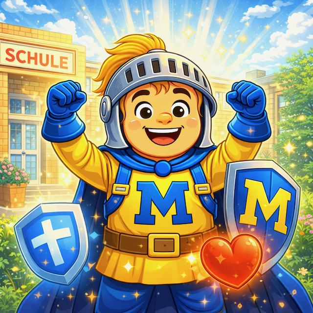 MartyMan ist das Sinnbild der Martin-Schule. Als moderner Ritter steht er für Schutz, Stärke und Herz. Er erinnert daran, füreinander da zu sein, Verantwortung zu übernehmen und mutig zu handeln – ohne andere zu verletzen. MartyMan begleitet unsere Schule im Alltag, bei Festen und Aktionen und ist für viele Kinder eine wichtige Identifikationsfigur.